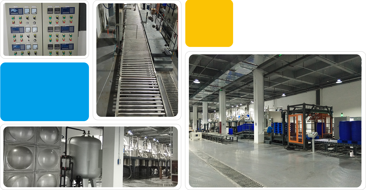 上海广东会为北京某客户量身定制的水性灭火剂生产线,该生产线为国内首条该领域的大产能生产线,包括水处理系统、粉体上料系统、搅拌混合系统、自动包装系统、电气自动化控制系统。